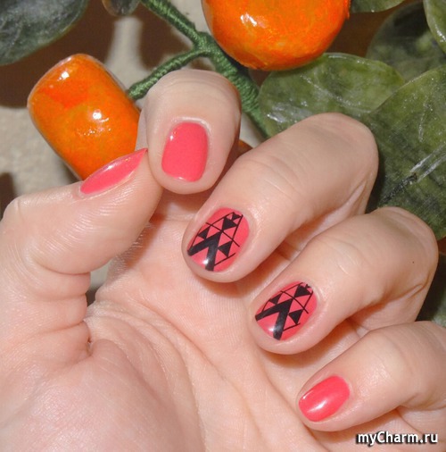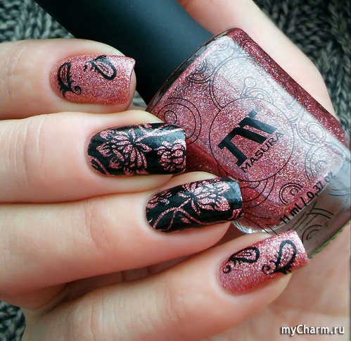 Это стемпинг черным по розовому лаку.