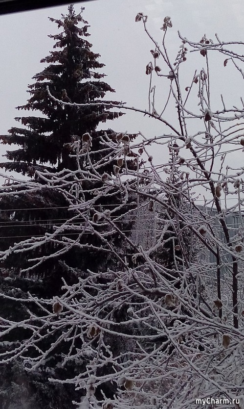 Не смогла удержаться и не сфотать. Это сегодня рано утром у нас такая красота была заснеженная