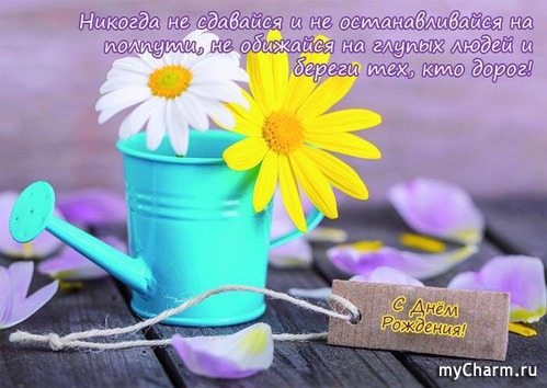 С Днём Рождения! Пусть в твоей жизни всегда светит Солнце! Пусть оно прогонит все тучи и грозы! Никогда не забывай о своих друзьях и родных! Пусть всё плохое забудется, а хорошее умножится! Живи, люби, мечтай, сегодня твой день! Пусть исполнятся все твои мечты!