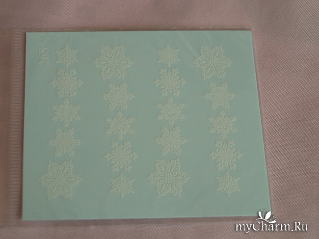 Теперь немного подробнее о тестировании. Вначале я решила попробовать слайдеры со снежинками. Поскольку этот рисунок одиночный и его не надо было укладывать на ноготь целиком. Достаточно вырезать снежинку и расположить ее в нужном месте.