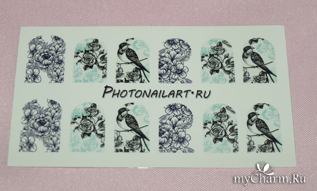 Слайдеры от Photonailart мне очень понравились. Отличное качество рисунка, прочность пленки достаточная, чтобы не порваться при работе и при этом она не грубая и легко разравнивается на ногтевой пластине. И конечно, самый большой плюс этих слайдеров, они оказались устойчивы к топу, при том, что слайдеры других фирм от данного топа размазывались.