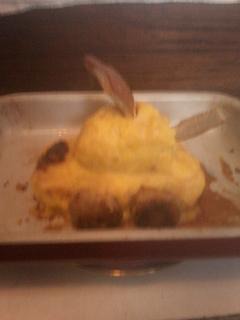 В общем, пока он дрых, мы по быстрому сварили картошку (на торт не хватило муки))), поджарили котлетки, в башню засунули котлетку, из них же сделали "гусеницы"