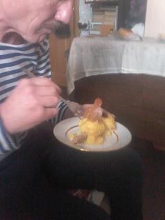 А доча в это время делала тортик. У нас он был вафельный.)))Подруга из детского питания сварганила на нас двоих сгущёнку варёную. Классненькая! А сверху она сделала бизешное покрытие))