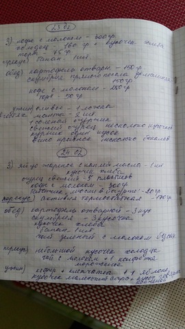 18-30 оладьи -100 г,каша пшенная -100г Вода 1250г чай-500г. Итого за день 856 кал Ж-17\18%,Б-36\19%У-135/63%