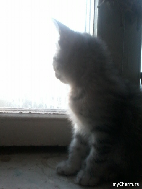 Забавно наблюдать, как он следит и открытого окна за воронами. А они его дразнят, пролетая близко на бреющем полете, или садятся неподалеку и каркают, чем вызывают у Батона желание поохотится.