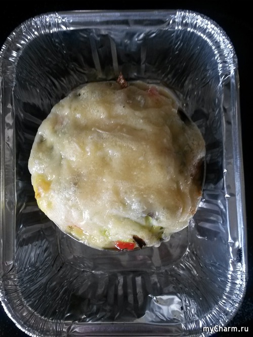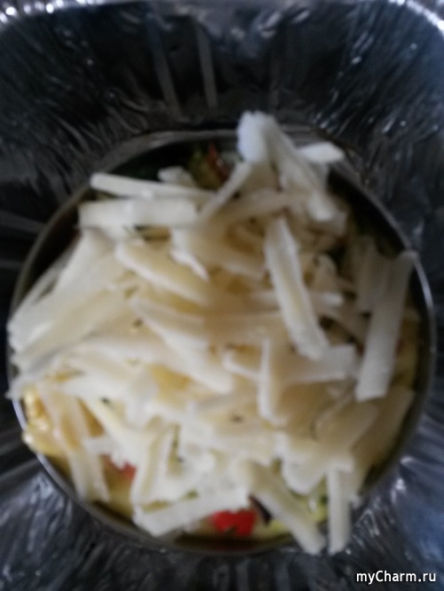 Отправляем в духовку еще на 10 минут, достаем, освобождаем от кольца, сверху еще посыпаем немного сыра и подаем.