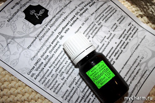 Absente Oil Elixir дополнен особым действием экстракта полыни. Уже даже по аромату несложно заметить наличие этого знакомого многим растения. Для кожи очень ценны его противовоспалительный и ранозаживляющий эффекты. Входящие в состав олигосахариды обеспечивают подтяжку и уплотнение подкожной жировой клетчатки. Инулин и азулен активно снимают зуд и раздражение. Попробуйте смешать пару капель масла с детским кремом или половиной чайной ложки воды и медленно втирайте в очаг воспаления полученный состав. Зуд от укусов насекомых или в период обострения дерматита проходит уже через пару минут. Действенное средство.