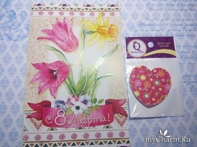 Еще на прошлой неделе я получила одновременно два письма-поздравления с 8 марта, но отчитаться получилось лишь сегодня поэтому показываю. Первое письмо от Юлии Б 1985 хранило в себе открыточку и милую пилочку в виде сердечка Спасибо Юля! В письме от Laapsa-Laapsa находилась открытка, очень красивые слайдеры для ногтей и лотерейный билетик с богатым выигрышем в 20 руб... Читать полностью |