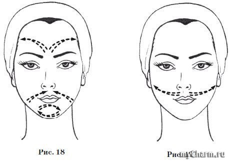 4. 2 минуты производим мелкие щипки по линиям мимических морщин (рис. 17, 18).