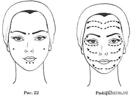 8. Производим надавливание по тонизирующим точкам (рис. 22). На эти точки надавливайте так же, как и на точки красоты.