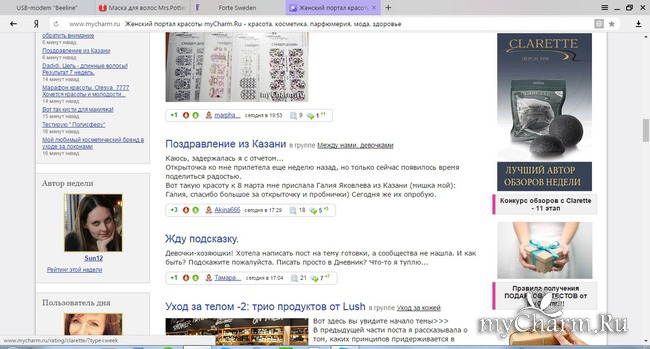 Было особенно радостно видеть свою аватарку, в этом окошечке - автор обзоров недели!