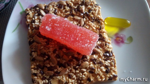 На завтрак 1 ч.л. варенья + 1 мармеладка.