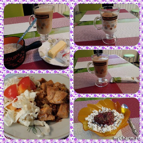По заданию: дневник сладостей не вела, их немного, и так всё помню, не без греха конечно. Конфеты и печенье почти не покупаем. Но на ужин горсть сушечек съем, не могу удержаться. Это во вторник, среду, четверг. По пятницам мы покупаем домашнее молоко, и так мне захотелось малинового варенья с молоком и это около 8 вечера( молоко приносят по вечерам). В субботу ходили на Д.Р. - кусочек торта около 7 . В воскресенье пол зефиринки часа в 4. В понедельник- разгрузочный день. Вроде всё.