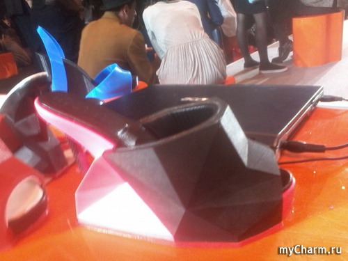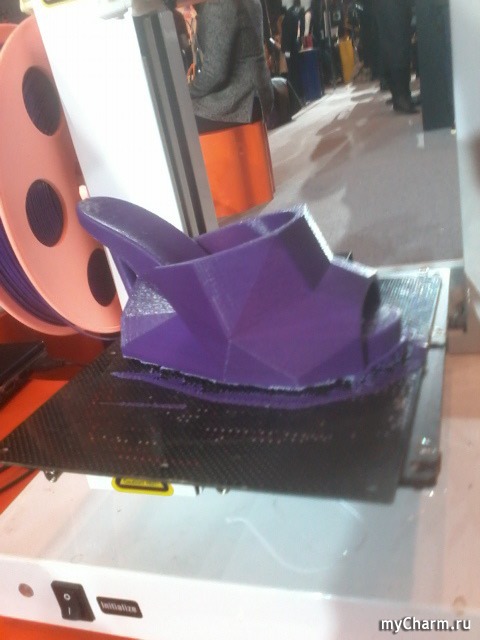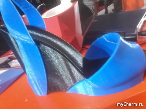 Очень маленькая туфля из пластмассы))) Но тяжёлая, зараза! Видимо. золотая!))))Ребята посетовали на некоторые недоработки, но тут же показали другую босоножку-тоже из того же материала, но значительно легче. В общем, тоже всё в процессе)))