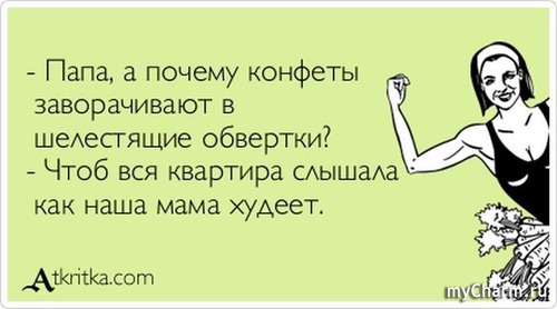 По прошлому заданию. Сладости строго в завтрак. Это, по чуть-чуть и не в один день: халва, козинаки, манник (готовила не сладкий, но ела его с маскарпоне и ягодами, протертыми с сахаром), на прошлой неделе доедала злаковое печенье, а на этой неделе были по 1 разу маленькое пирожное типа муравейник и 2 вафли с шоколадной начинкой (ну очень захотелось попробовать); вечером с творогом по 3-4 шт. чернослив. Вообще в магазине мне трудно удержаться. Покупаю, несу домой, и там уже предпринимаю последнюю попытку - предлагаю детям. Если отказываются, приходится есть по чуть-чуть самой, но строго на завтрак. Это единственный выход, не могу, девочки, совсем отказаться. Чистой воды психология, но не могу я питаться исключительно правильно.