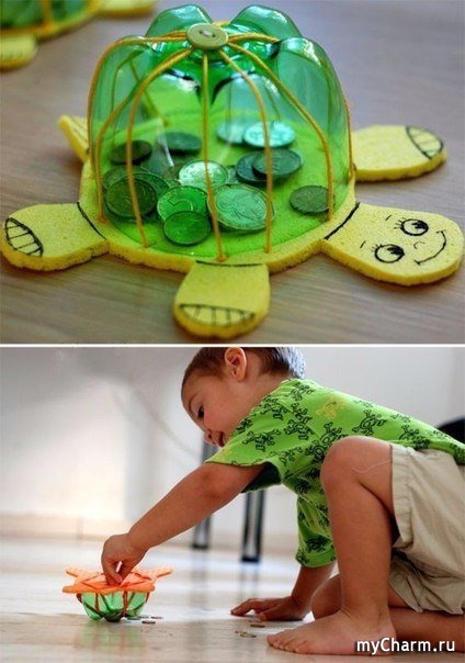 myCharm.Ru → Черепашка-копилка из пластиковой бутылки