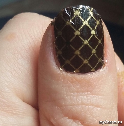 Смотрится на ноготке аккуратно, хотя где-то вижу, что слайдер чуть поплыл. Не пробовала переворачивать пленку?)