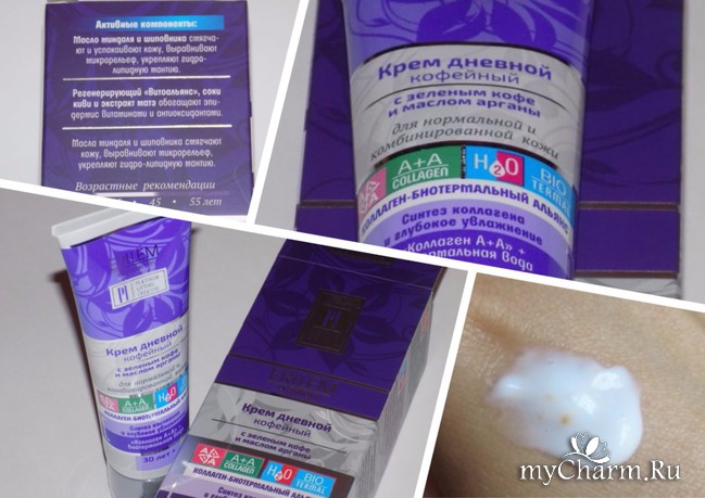 Зная о свойствах имбиря, я взяла бы и дневной крем с этим растением, но у «Венца Сибири» такого нет. На день предлагается дневной кофейный крем – с арганой и зеленым кофе. Сначала я расстроилась, что нет имбирного, но потом поняла, в чем задумка.
