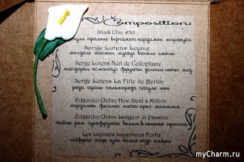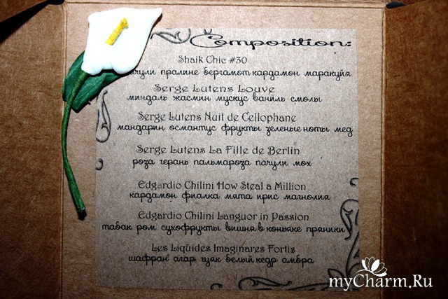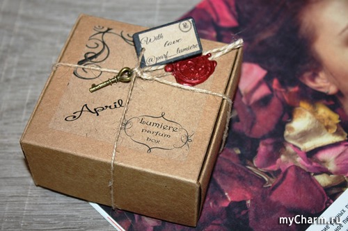 Открытия свершились, а значит, ключик на коробке вполне символичен. К моему сердечку он явно подошел аж тремя вариантами парфюмов, да и остальные не заставят себя ждать. Всегда есть место экспериментам и особому настроению! Кстати, данная версия бокса действительно оформлена оригинально. Своего рода именное послание из прошлых веков с сургучной печатью и кованным ключиком. Вполне реально почувствовать себя принцессой или придворной дамой, получившей дар от тайного поклонника… Да, в качестве сюрприза-подарка Lumiere parfum box подходит на все сто.