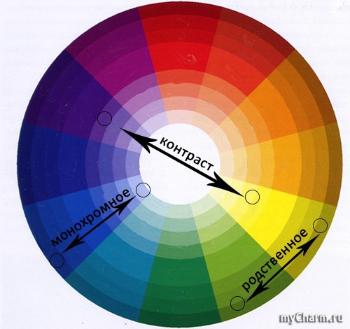 То есть или в контраст, или в монохроме, или родственные. Находишь свой цвет и далее либо по диагонали, либо вдоль по кругу.
