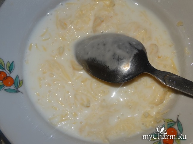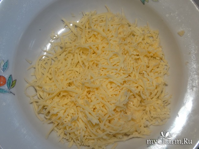 Сыр натерла на средней терке ( у меня был "Диетический", 20 % жирности).
