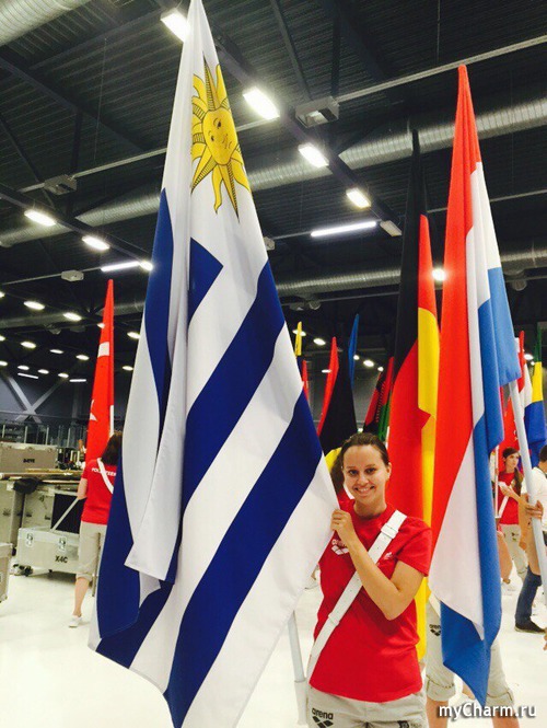 Вот на водном чемпионате участвовала когда, была волонтером парада: на открытии и закрытии носили флаги стран.
