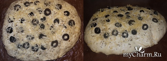 Решила, помимо прованских трав, добавить маслины и тертый сыр.