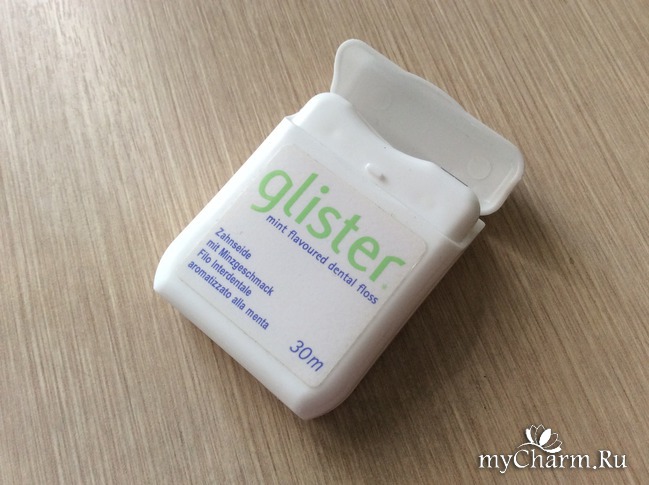 Раз в неделю (бывает, конечно и реже) использую зубную нить. Сейчас у меня зубная нить Glister. Люблю зубную нить, все-таки она легко проникнет в те места, где щетки не бывает.