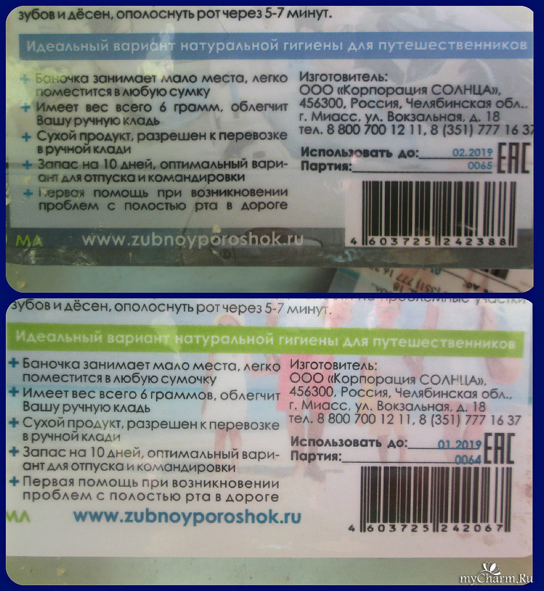 Так же, хочу отметить, что выбирая себе зубной порошок "Солнечный зайчик", можно брать любой - так как вкусы у них практически не отличаются. Выделяются лишь Мята и Гвоздика в них вкусовые нотки ощущается сильнее. Производитель любезно вложил в мою посылку целый набор пробничков, поэтому у меня была возможность попробовать все "вкусы".