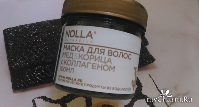 Конечно, маски для волос Nolla тоже заслуживают пристального внимания. Ведь они сделаны на основе водорослей и других ценных компонентов. А о натуральности свидетельствует помимо состава тот факт, что маску после открытия нужно использовать за 1 месяц. Вот, к примеру, маска «Мёд & корица» с коллагеном.