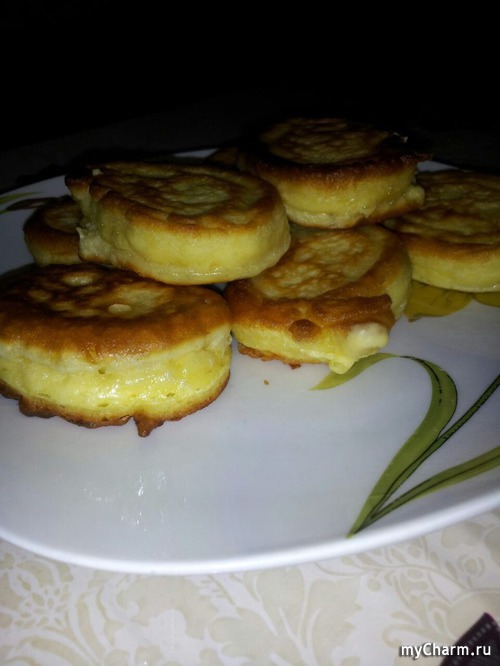 и можно жарить оладьи, в разогретое масло выкладываю тесто столовой ложкой, оно должно сползать с ложки, а не литься