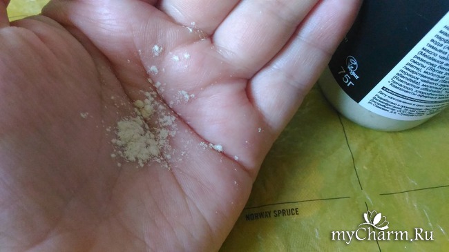 Теперь к удобству использования. «Лаш» сделал все возможное, чтобы этим дезодорантом было удобно пользоваться. Под крышечкой есть небольшое отверстие, которое позволяет не высыпать лишнего. Хочу отметить, что крышечка удобная и прочная. У меня ломаются очень многие крышки. Эта пока цела. Высыпаете на ладонь, потом похлопываете в зонах дезодорирования. Всё. Особо ничего не осыпается.