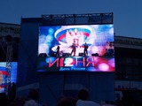 На площади была большая сцена, на которой выступали разные коллективы, а по бокам большие экраны, на которых можно было рассмотреть выступающих.