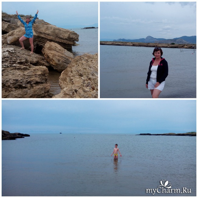 Погода распогодилась и мы купались. Там мы дождались нашего героя, который вернулся, облазив весь мыс.