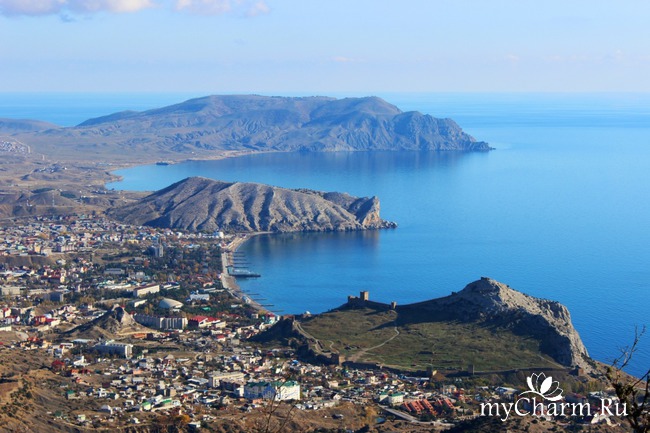 С одной стороны Судака гора Крепостная, на которой находится Генуэзская крепость, с другой мыс Алчак.
