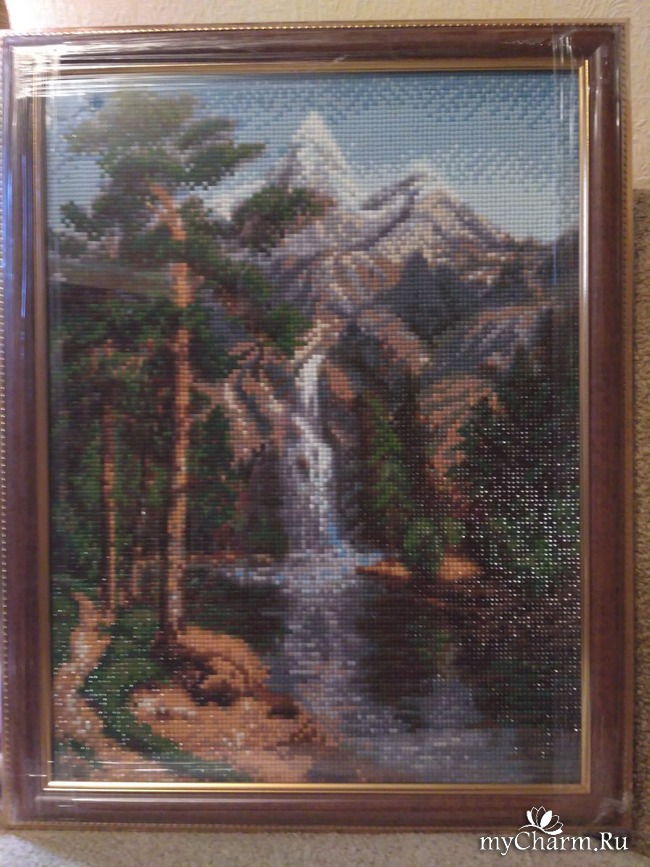 А вот второй подарок я делала своими руками. Это картина - алмазная мозаика. Полгода работы. Вроде неплохо получилось на первый раз. Отдали картину в багетную мастерскую. и нам ее оформили в рамку. Вот... Оцените плоды трудов моих.