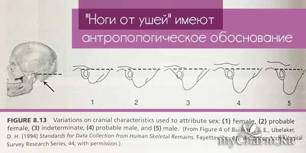На шкале из учебника по криминалистике можно увидеть, что сосцевидный отросток представлен в человеке не в двух формах, “мужской” и “женской”, а в спектре от явно-женского (1) к вероятно женскому (2), неопределимому (3), вероятно-мужскому (4) и явно-мужскому (5).