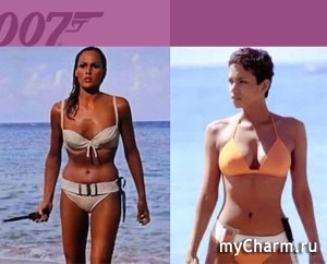 Традиционно принято считать выраженную талию и большую грудь символом женственности. Их наличие или отсутствие напрашиваются в кандидаты на маркеры для определения Салонной и Степной. Что в комментариях к самому первому посту вы немедленно и предложили. Но у природы все сложнее. И, одновременно, проще. Вот вам для примера две девушки Бонда. Одна – Салонная, другая – Степная. Которая какая? Правильно, Урсула – Степная, Холли – Салонная. Несмотря на то, что у Урсулы талия более выражена. Ее талия сопровождается широким, воинственным торсом, за которым вполне можно спрятаться, как за римлянином с полотна Боттичелли, а вот за Холли…. прятаться как-то неловко. Ключицы – пресловутый символ женственности – на такой грудине, как у Урсулы, почти совсем не фигурируют. Переход от шеи к плечу у Урсулы резкий, рубленый. И такая же резкая, сбитая линия талии. Продукт крепких, крупных лопаток. В одежде такие шея и талия могут пропасть, поэтому, чтобы демонстрировать женственность, сексапил и гармонию, такую фигуру лучше всего раздевать и показывать в формате “Миллион Лет До Нашей Эры.”