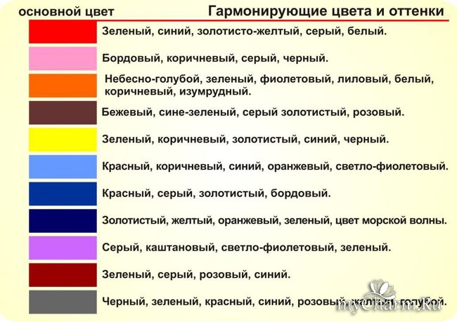 Зачастую при выборе одежды, аксессуаров, мебели и пр. задаешься вопросом, а будет ли это сочетаться по цвету с другими предметами. Чтобы облегчить задачу, размещаю таблицы сочетаемости цвета, найденные на просторах интернета. Будьте всегда стильными и красивыми! Читать полностью |