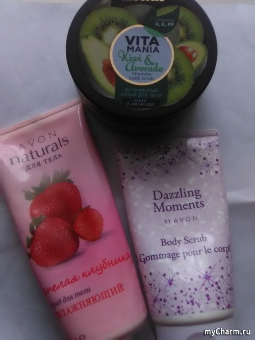 Неделя 1. 10 июля. Баня. Скраб для тела от Avon Клубничный для рук и для ног, пятки ещё и пемзой потёрла. Дома уже нанесла своё любимое масло для тела от faberlic beauty cafe very delicious Ванильное лакомство.