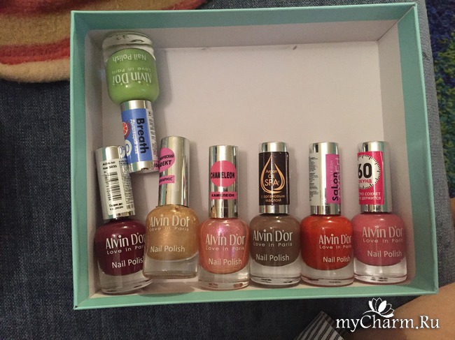 Моя коллекция Alvin D’or растет день ото дня. Все эти лаки я показывала вам в течение года – они появлялись у меня постепенно. Получилась такая вот маленькая и миленькая коллекция, которую я заботливо храню в красивой коробочке.
