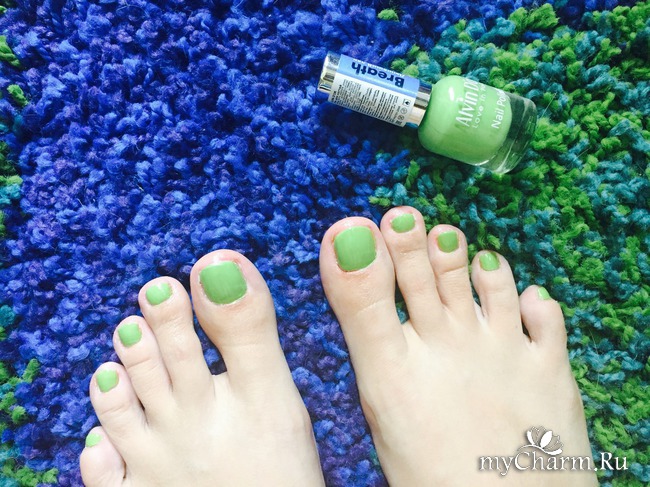 В-пятых, лаки выпускаются для разных потребностей. Например, есть быстросохнущая серия – лак высыхает за 1 минуту. Вот мой зелененький лак – «дышащий» - позволяет воздуху добираться до ногтевой пластины.