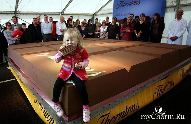 Самая большая плитка шоколада весила 5,8 тонны и была изготовлена на фабрике Thorntons plc в Великобритании 7 октября 2011 года.