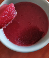 Разведем 10 гр желатина в небольшом количестве прохладной воды и оставим до набухания. Оставшиеся 100 гр мякоти арбуза измельчаем (пюрируем) в блендере.