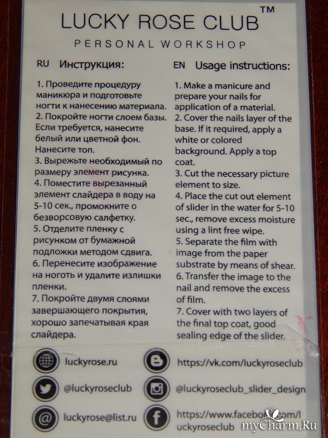 Привет, мои дорогие, лакоманьчки и сочувствующие! Уже больше месяца прошло, как я, получила на тестирование очень оригинальные слайдеры от "LUCKY ROSE". Более подробно, я писала об это здесь: https://www.mycharm.ru/post/29624/ Было их очень много: Конечно же, подробная инструкция на обратной стороне. Сразу оговорюсь, что требование - 5 маникюров, я перевыполнила... Читать полностью |