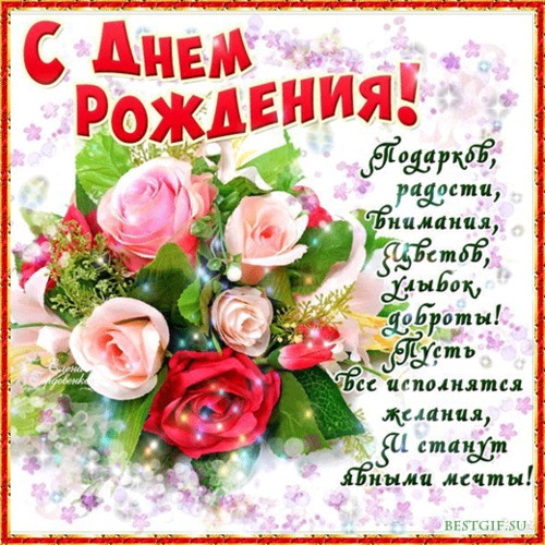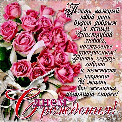 Желаю тебе крепкого здоровья, женского счастья, семейного благополучия, успехов во всех начинаниях, чистого неба над головой, верных друзей, и исполнения всего задуманного!!!