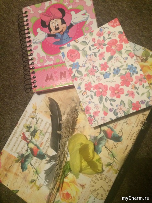Блокнотик выбрала весь в цветах и записала туда пять желаний. А коробочка оказалась просто идеальной по размеру)))