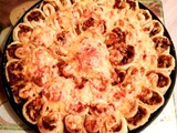 Вся сложность создания «Хризантемы» заключается не столько в приготовлении теста, сколько в ручной сборке каждого «лепестка». В остальном, работу с этим пирогом нельзя назвать трудоемкой.