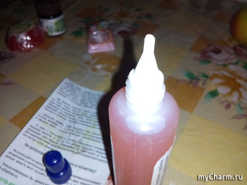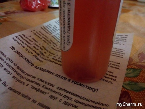 А внутри тоника что-то плавает. Не знаю что, но надеюсь, что клубничка. Тем более аромат средства - аромат клубничного варенья.
