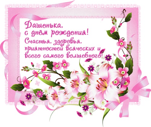 Дашенька, Поздравляем с чудесной датой, когда всё можно и всё возможно. В твои 25 лет от всей души желаем постоянного веселья для души, большой удачи в деятельности, несомненного успеха в делах, светлых чувств в отношениях, добрых историй в жизни и волшебного счастья на пути!!! С Днем Рождения!!!